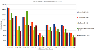 - Chandler's rates seem to yield the most reasonable ASD based TMRCAs, this seems more especially true for older lineages.