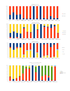 For the Dataset that includes the Yemenis (above), @ K=2, the Chadic speakers are separated from the rest, Ethiopians occupying an intermidiate position but leaning more towards the latter group. @ K=3 a Cluster emerges that peaks in the Ethiopian Jews but is also heavily present in both the Egyptians and the Yemenis.