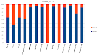 For the Dataset that does not include the Yemenis (below), @ both K=2 and K=3 a very similar breakdown of the clusters as above is observed.