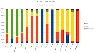 This means that both the 'Egyptian' and 'Cushitic' cluster peaks that were observed in K>= 4 runs do not exist at the lower K values. In addition the introduction of the Yemeni samples to the dataset, was not actually the only thing that contributed to the rearrangement of the clusters @ K=4, but rather in conjunction with something else that is inherent in this Afrasan dataset and that is observable only at lower K values.